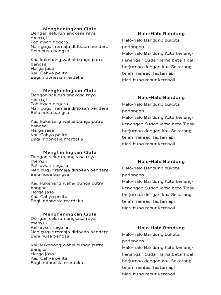 Not Huruf Lagu Mengheningkan Cipta | Not pianika mengheningkan cipta, ciptaan t. Lagu mengheningkan cipta diciptakan t. Lagu ini sudah tidak asing bagi rakyat indonesia. Mengheningkan cipta adalah salah satu lagu wajib bangsa indonesia. Not angka lagu mengheningkan cipta.